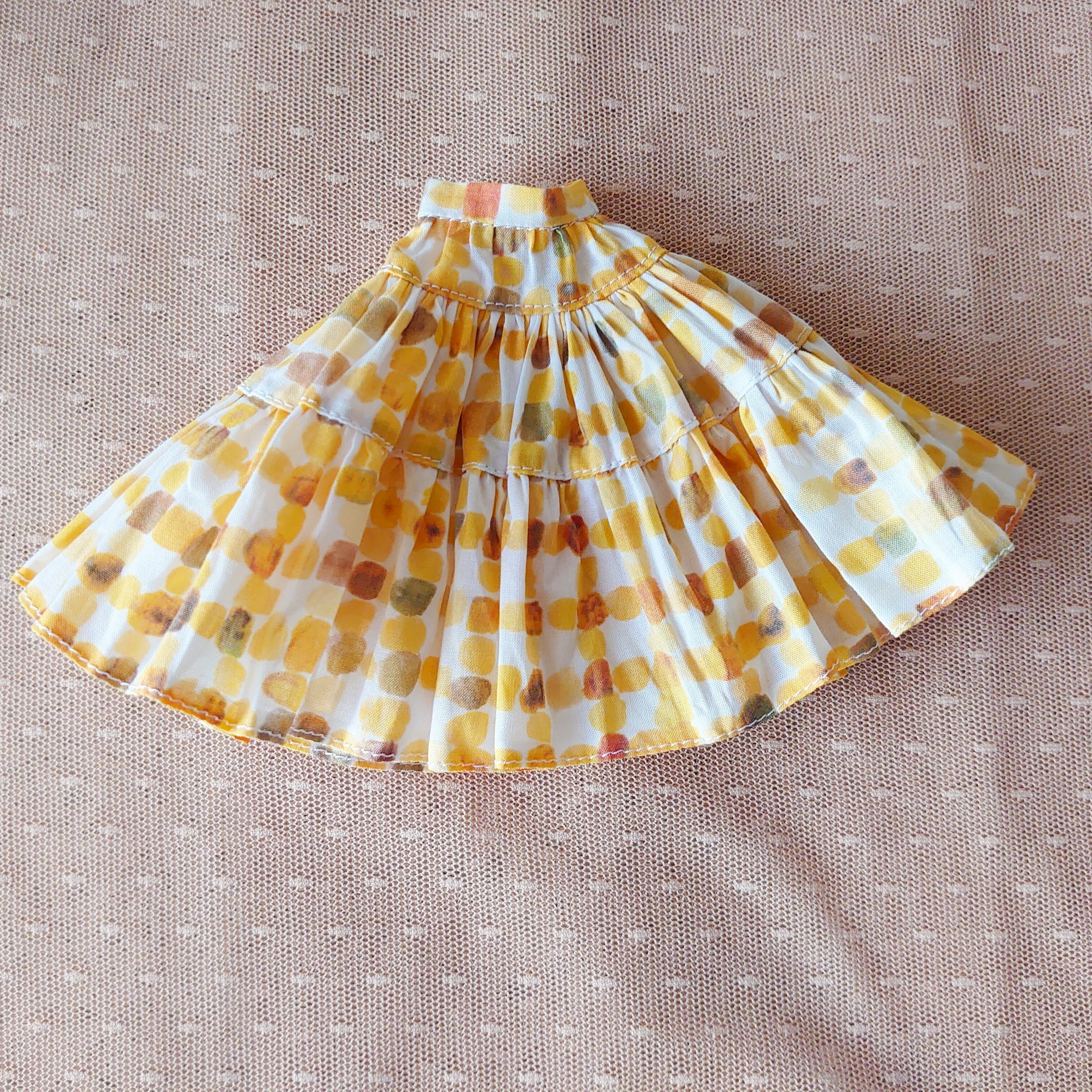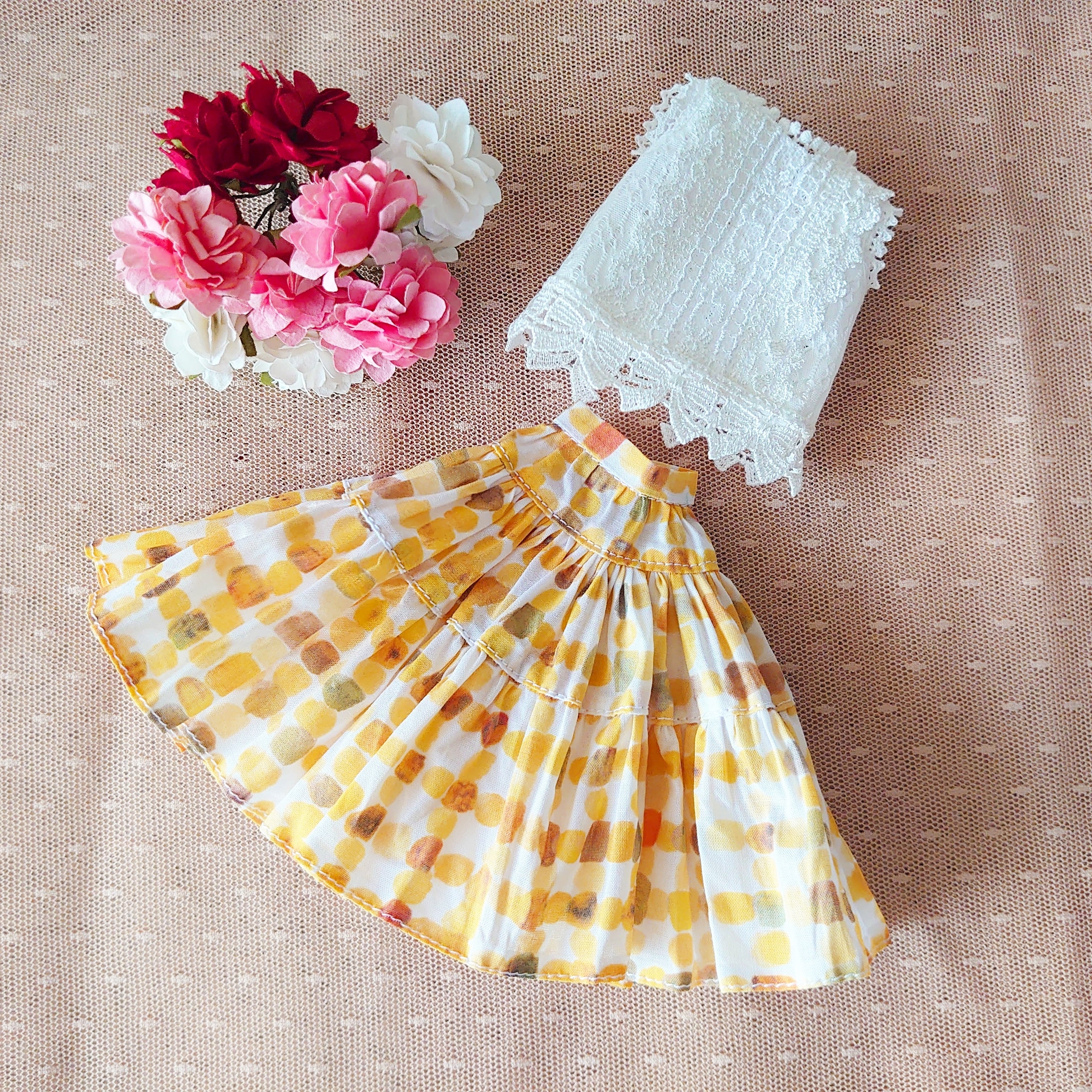 27cmドールサイズ☆レースのトップスとチェック柄スカートのセット【Yellow】