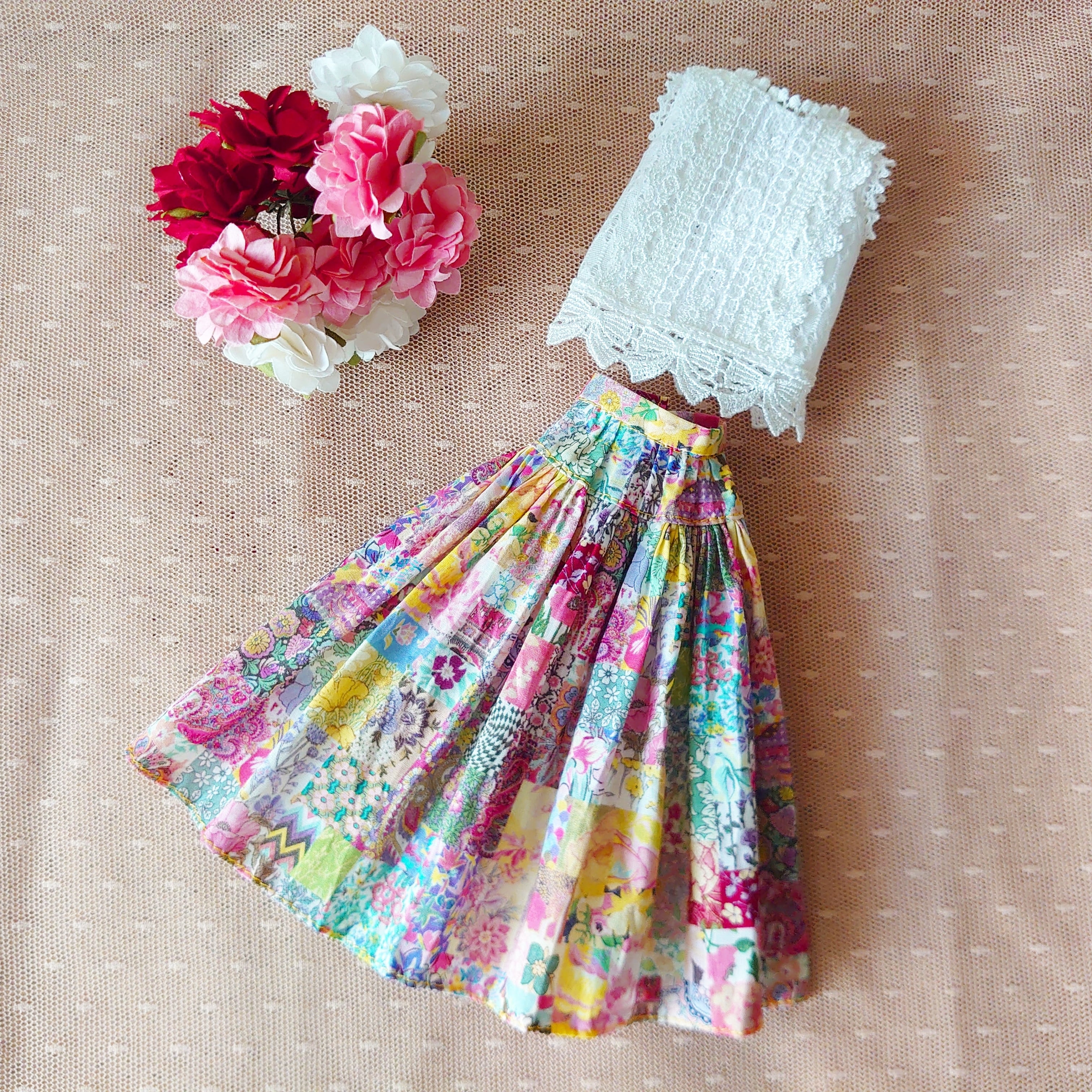 27cmドールサイズ☆レースのトップスとミモレ丈スカートのセット【A】
