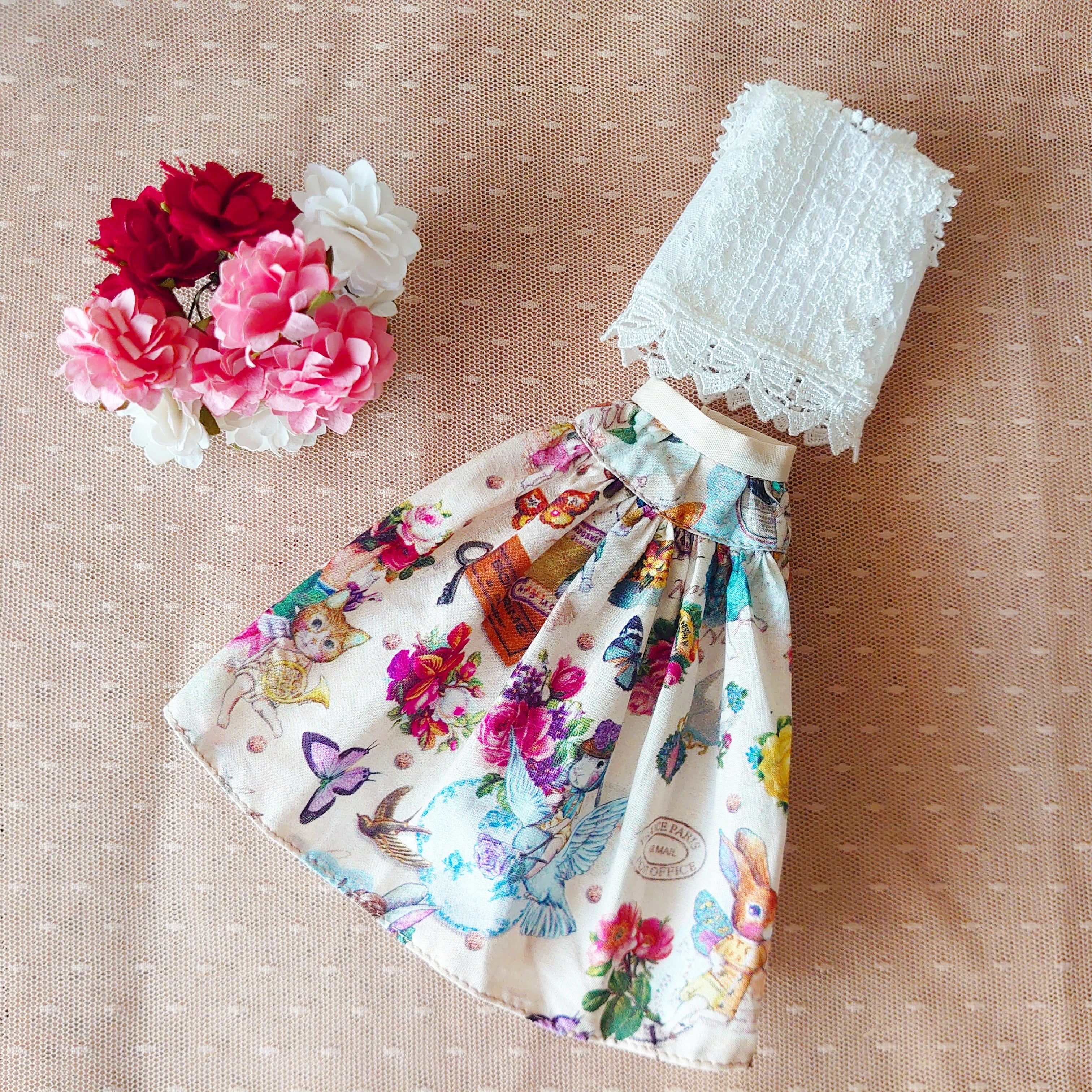 27cmドールサイズ☆レースのトップスとミモレ丈スカートのセット【D】