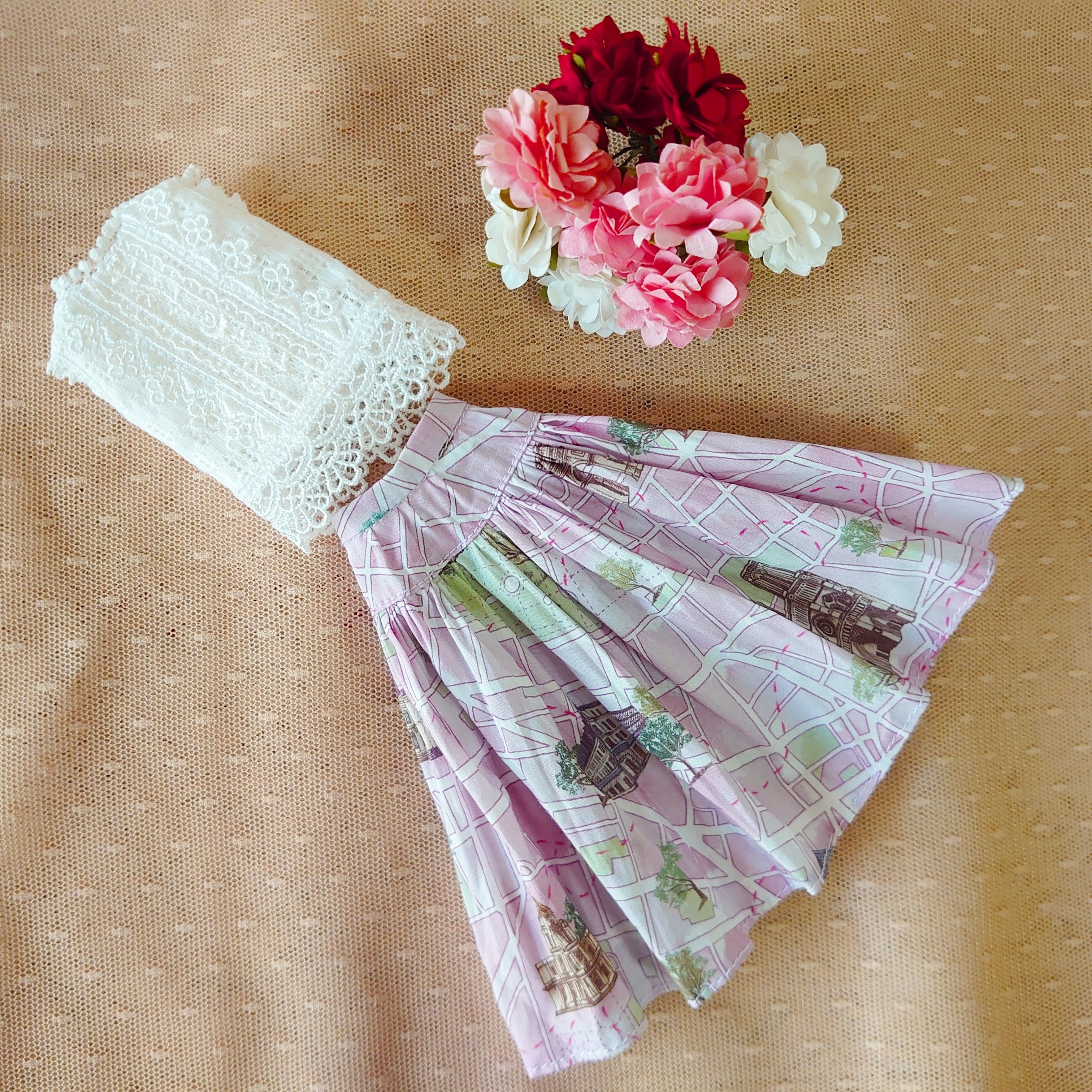 27cmドールサイズ☆レースのトップスとミモレ丈スカートのセット【E】