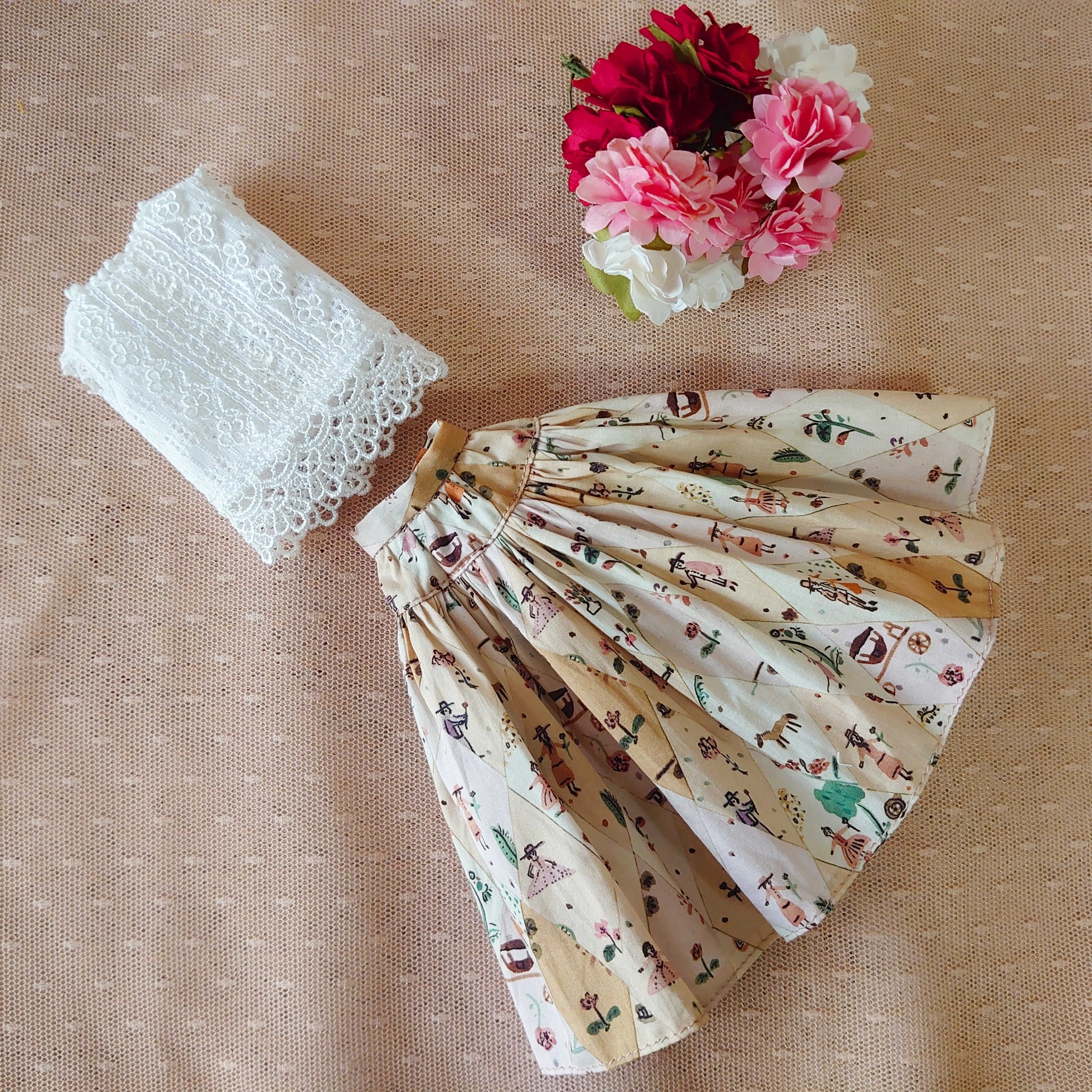 27cmドールサイズ☆レースのトップスとミモレ丈スカートのセット【G】